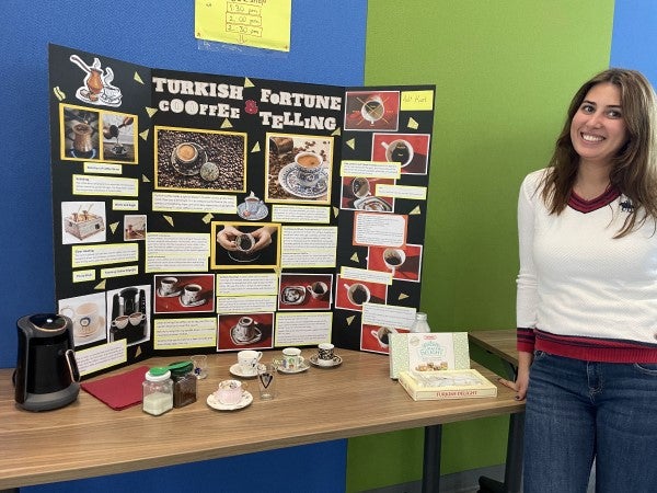 Asli (Turkey) demonstrated her country's unique custom of telling fortunes by interpreting the patterns and markings of a Turkish coffee serving.