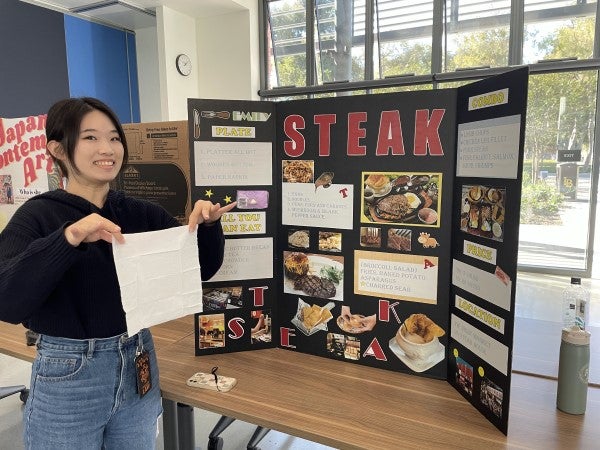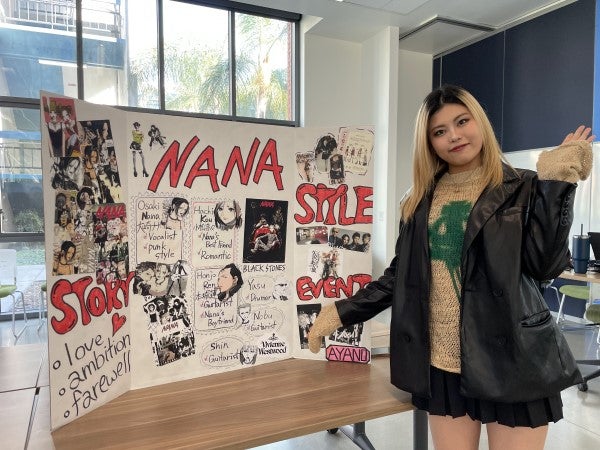 Ayano (Japan) with a poster about her favorite Japanese manga story and its influences from fashion and punk rock subcultures.